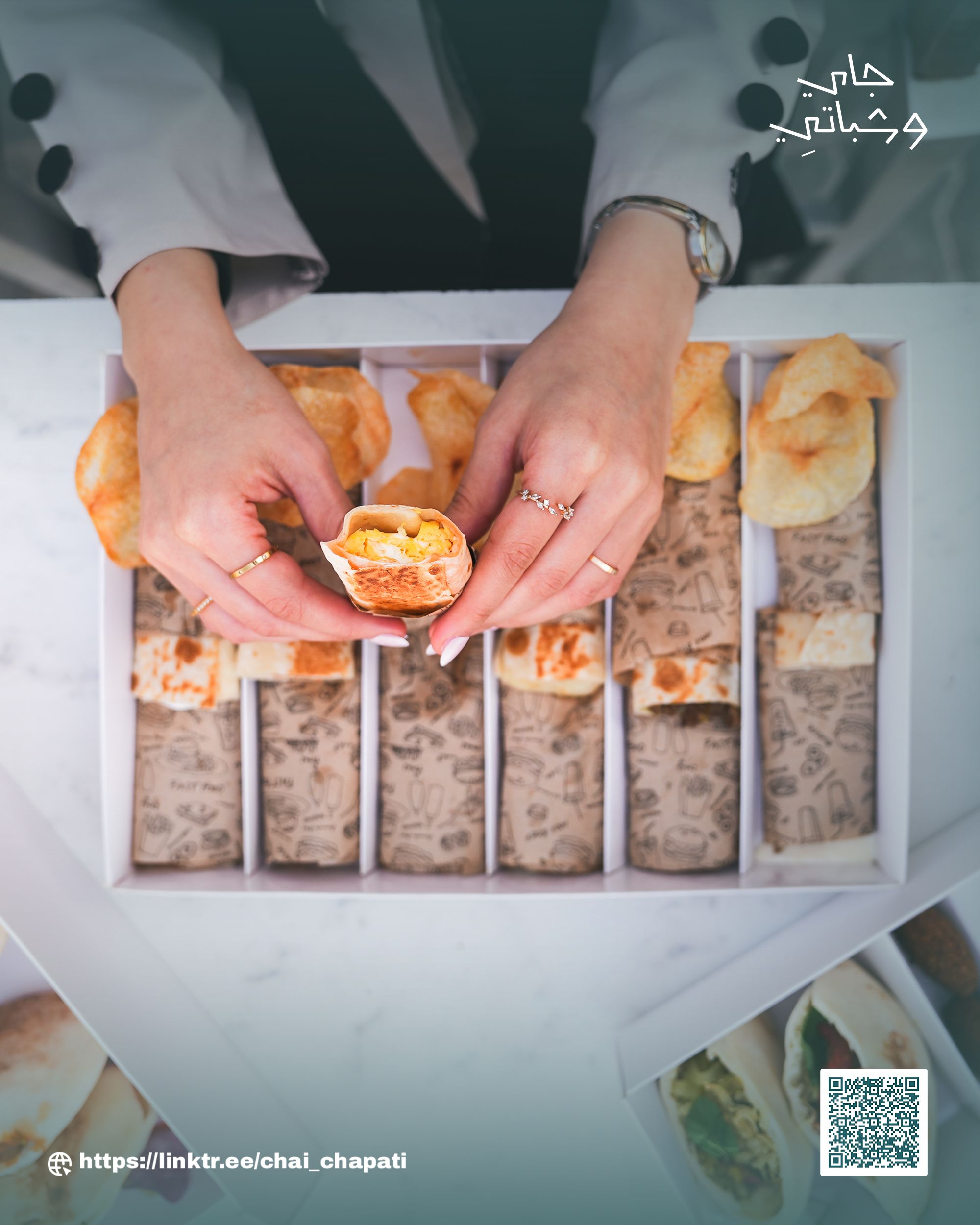فكرة اللإفطار الصباحي والوجبات الخفيفة طوال اليوم والمستوحاه من دول شرق آسيا الشهيرة بالكرك وخبز الشباتي وإضافة المكونات التي يرغب بها العميل